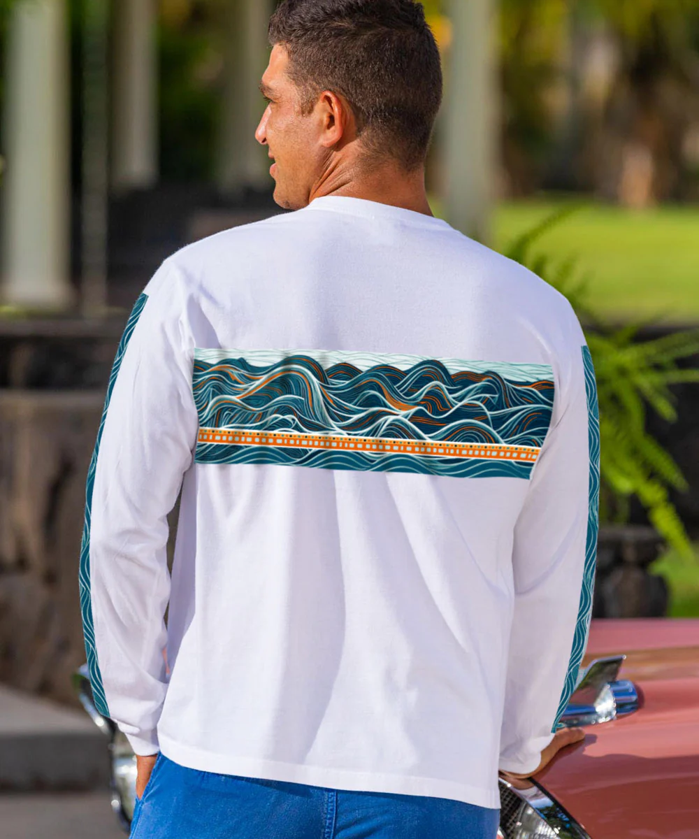 Come the winter months in Hawaii, the big waves roll in and it is quite a sight to behold. Forceful and dynamic, just like this design, these swells are a testament to the power of the ocean. Made from 100% cotton that is ring-spun then combed to remove impurities, this fabric is luxuriously soft and lightweight yet incredibly strong. We only use environmentally friendly, water-based inks that penetrate the material's fiber resulting in more vibrant colors, softer feel and artwork that doesn't crack or peel. Plus, it is proudly printed in the United States for quality you can see and designs that stand the test of time.