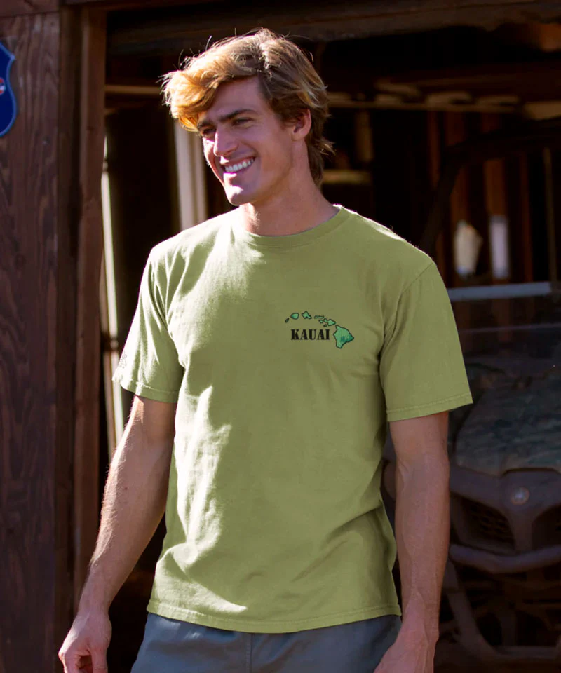 From the lush cliffs of the Napali Coast to the misty trails of Waimea Canyon, the Garden Isle is packed with wonder in every direction. This island snapshot maps out Kauai's most iconic gems, capturing the spirit of aloha from shoreline to mountaintop. Made using our exclusive specialty dyeing process that uses real industrial hemp and featuring 100% combed ring-spun cotton, this t-shirt has 50+ SPF protection to keep you feeling cool, calm and protected all year long. We only use environmentally friendly water-based inks that penetrate the material's fiber resulting in more vibrant colors, softer feel and artwork that doesn't crack or peel. Plus, it is proudly printed in the United States for quality you can see and designs that stand the test of time.