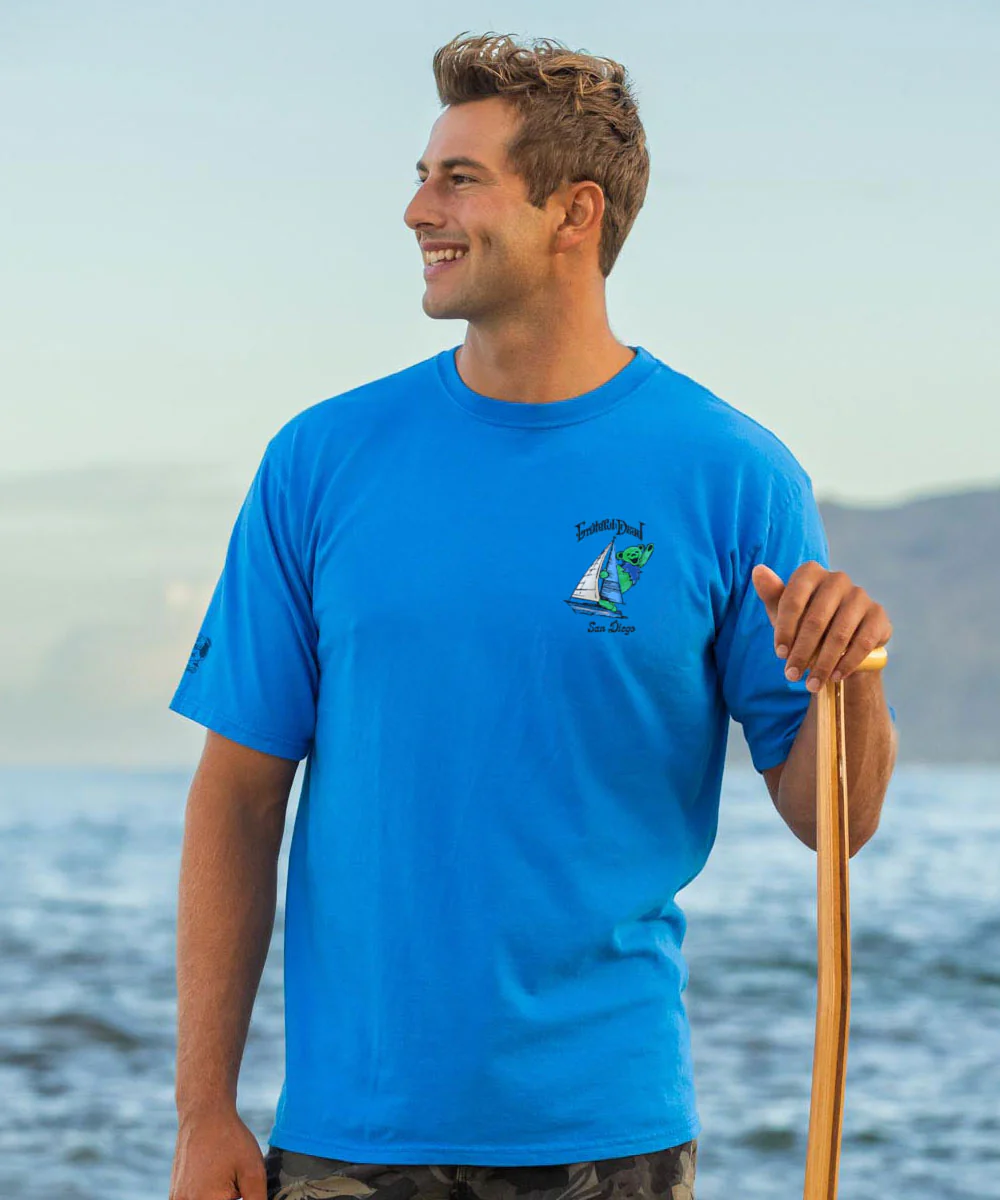 In San Diego, we love the Dead but we're not Truckin' like the doo-dah man; we're Sailing like this Dancing Bear. Enjoy the ocean breeze and some cool tunes while you're wearing this officially licensed Grateful Dead tee. Made using our exclusive specialty dyeing process that uses real blue curacao liqueur and featuring 100% combed ring-spun cotton, this t-shirt has 50+ SPF protection to keep you feeling cool, calm and protected all year long. We only use environmentally friendly water-based inks that penetrate the material’s fiber resulting in more vibrant colors, softer feel and artwork that doesn’t crack or peel. Plus, it is proudly printed in the United States for quality you can see and designs that stand the test of time.