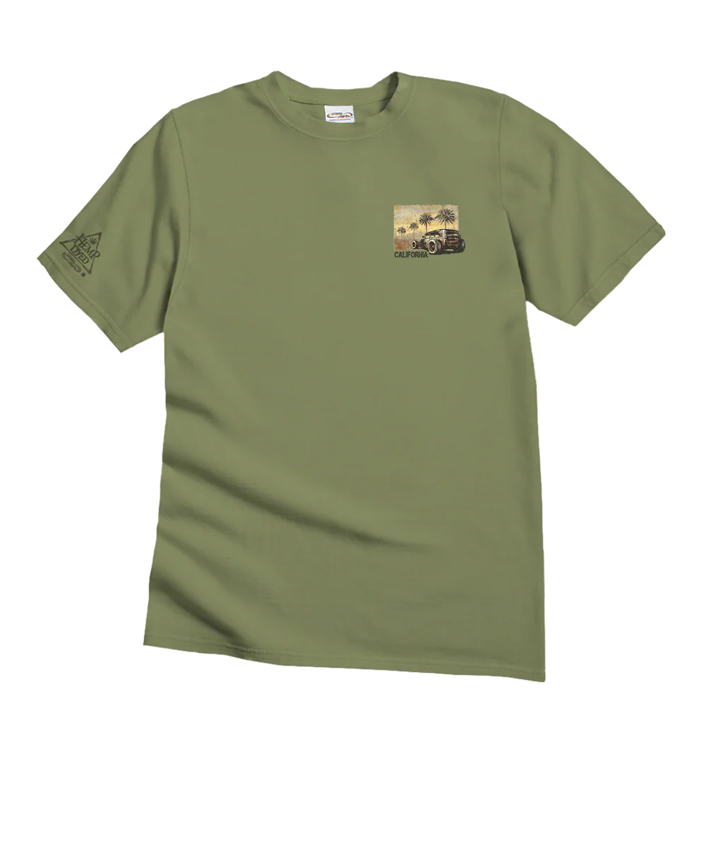 Classic palms, a vintage ride, and the open road ahead - this one's all about golden hour cruising down the PCH. A laid-back nod to California's iconic coastal spirit, where every mile is lined with sunshine and stories. Made using our exclusive specialty dyeing process that uses real industrial hemp and featuring 100% combed ring-spun cotton, this t-shirt has 50+ SPF protection to keep you feeling cool, calm and protected all year long. We only use environmentally friendly water-based inks that penetrate the material's fiber resulting in more vibrant colors, softer feel and artwork that doesn't crack or peel. Plus, it is proudly printed in the United States for quality you can see and designs that stand the test of time.