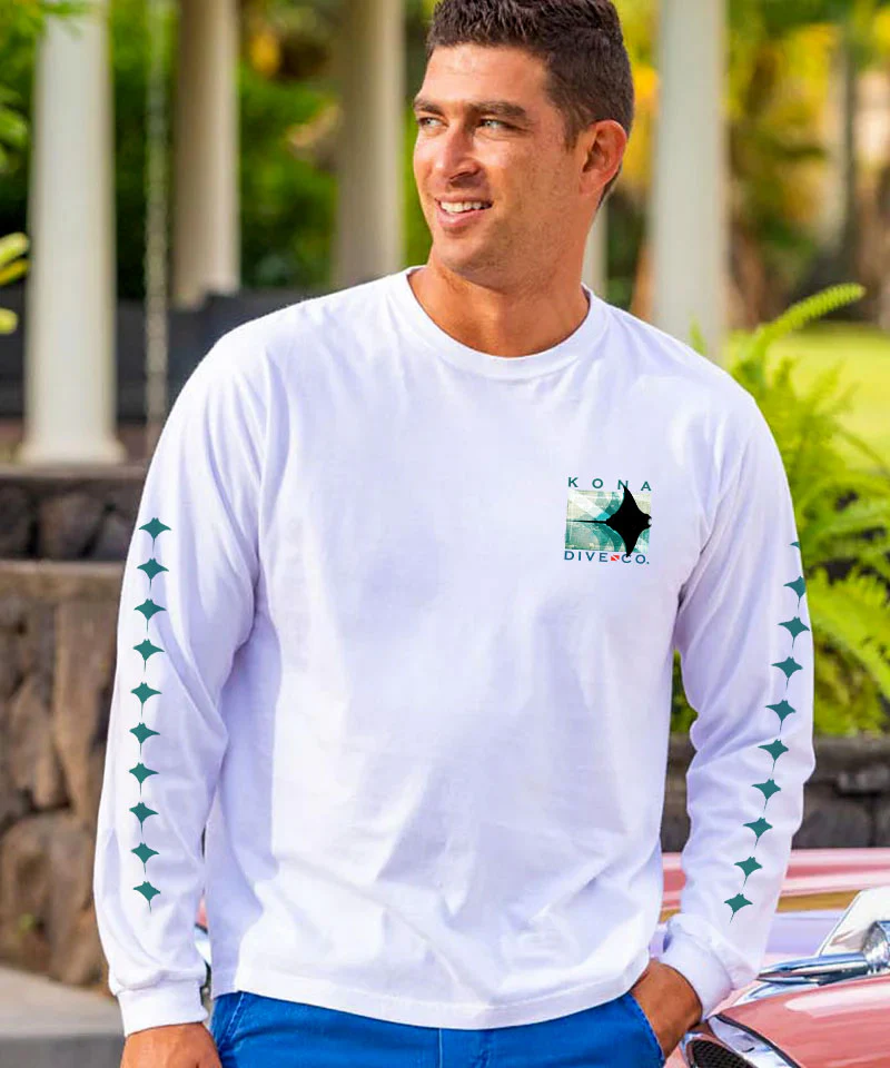 Kona Dive Company Blur - White Long Sleeve Crewneck T-Shirt