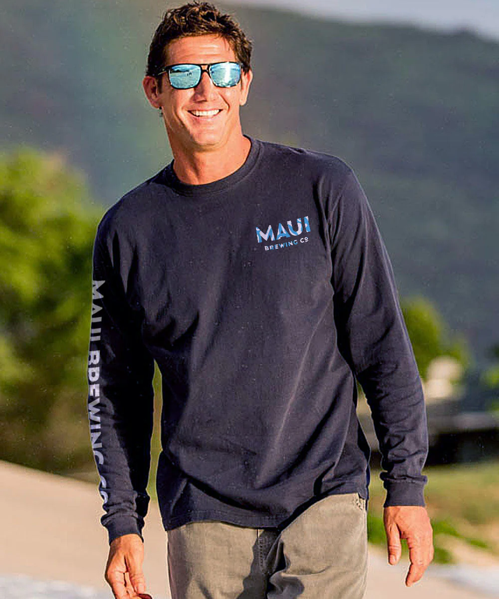 Maui Brewing Co New Big Swell - Navy Long Sleeve Crewneck T-Shirt—