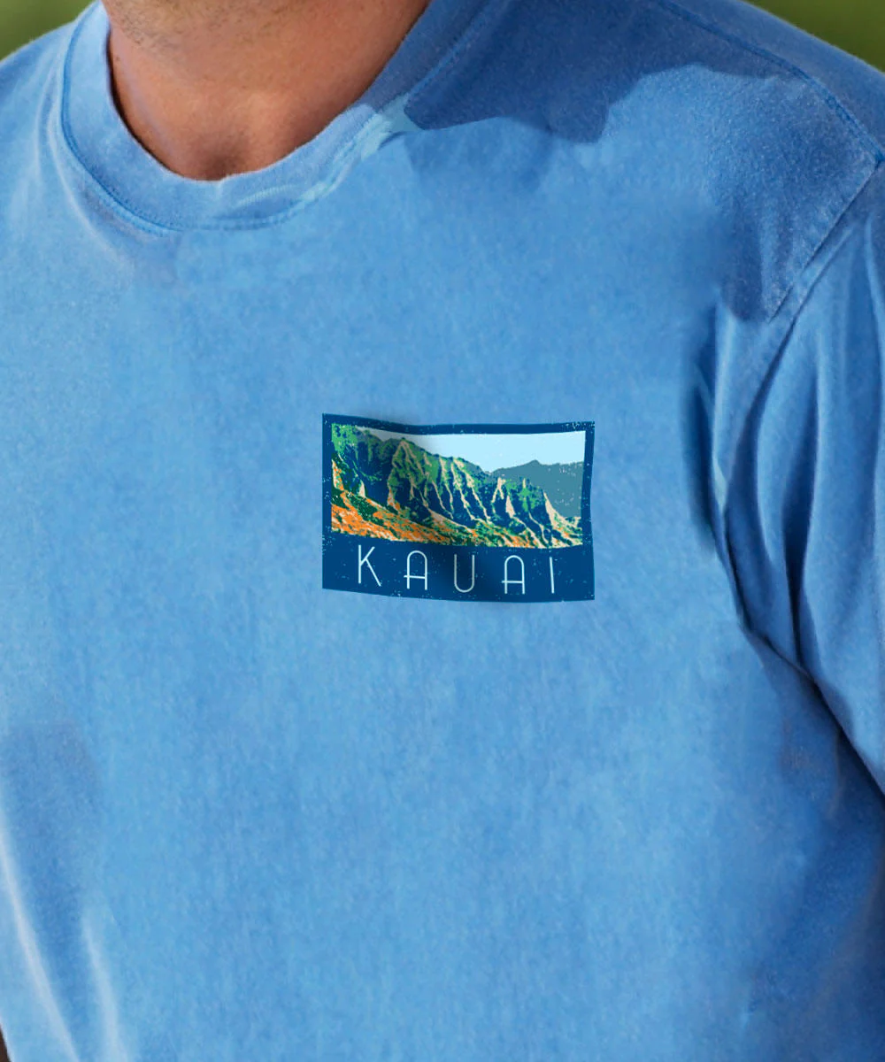 Sunlight on the sail, dolphins at your side, and cliffs rising like emerald cathedrals from the sea - this breezy escape captures the awe of Kauai’s Napali Coast, where every wave carries a sense of wonder. Made using our exclusive Blue Hawaii specialty dying process and featuring 100% combed ring-spun cotton, this t-shirt has 50+ SPF protection to keep you feeling cool, calm and protected all year long. We only use environmentally friendly water-based inks that penetrate the material's fiber resulting in more vibrant colors, softer feel and artwork that doesn't crack or peel. Plus, it is proudly printed in the United States for quality you can see and designs that stand the test of time.