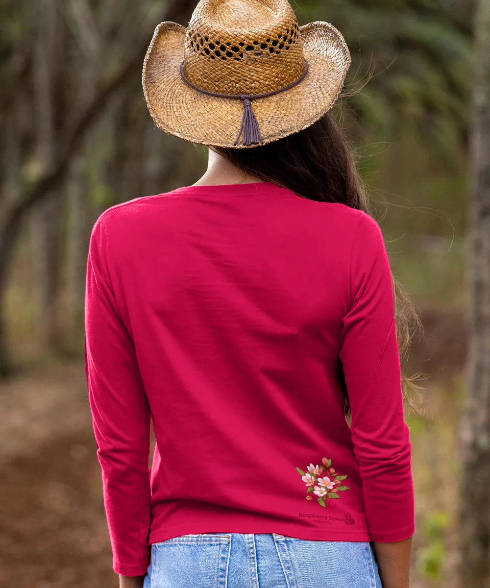Blossom Cascade - Raspberry Dyed Long Sleeve Crewneck T-Shirt